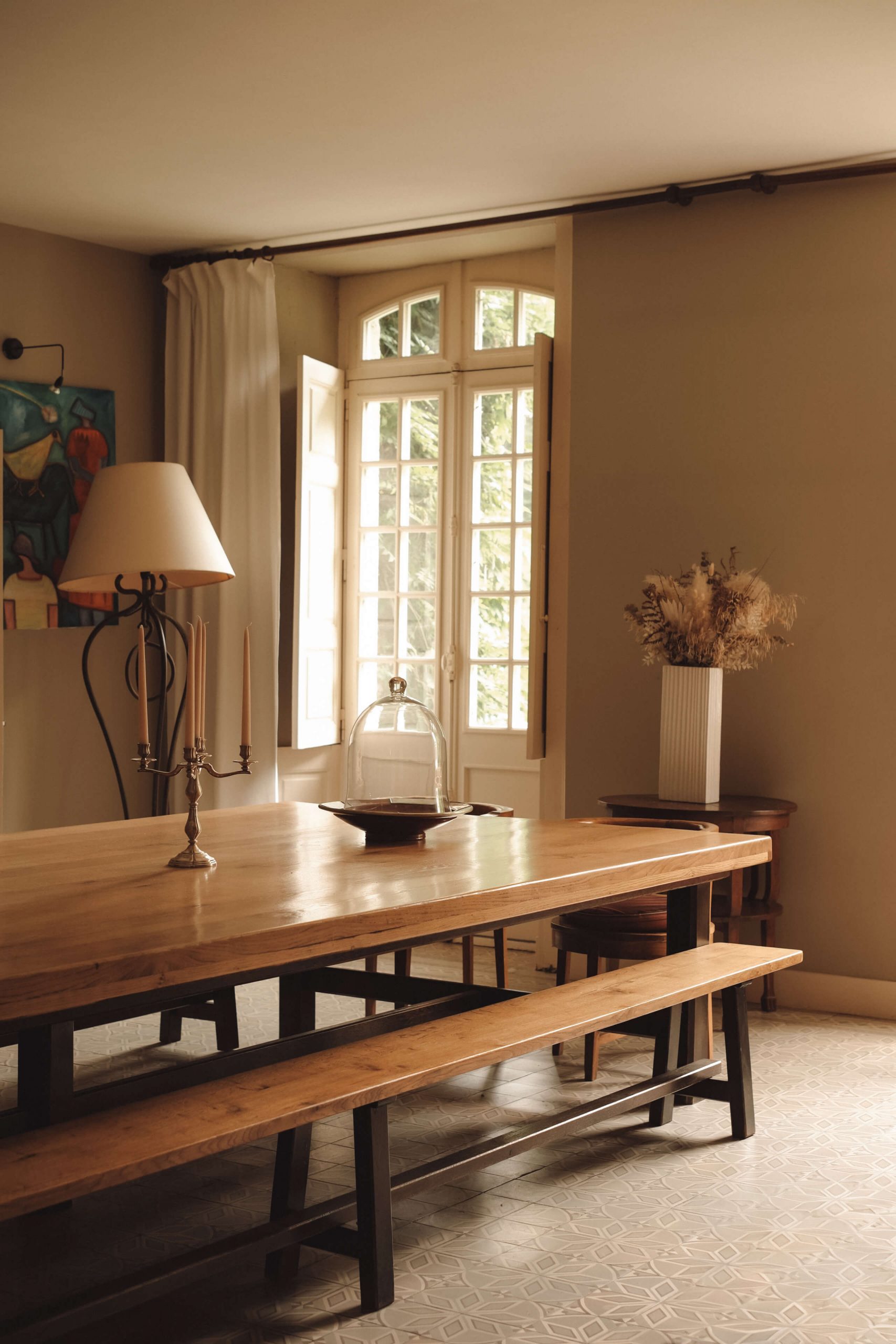 Mais ici, la nature cohabite avec un art de vivre chaleureux. La bâtisse, entièrement restaurée, allie le charme d’origine au confort contemporain. C’est un lieu qui vit et reçoit : grandes tablées dans la salle à manger monumentale, dîners d’exception préparés dans la cuisine semi-professionnelle, réceptions élégantes dans les salons en enfilade ou sur les terrasses