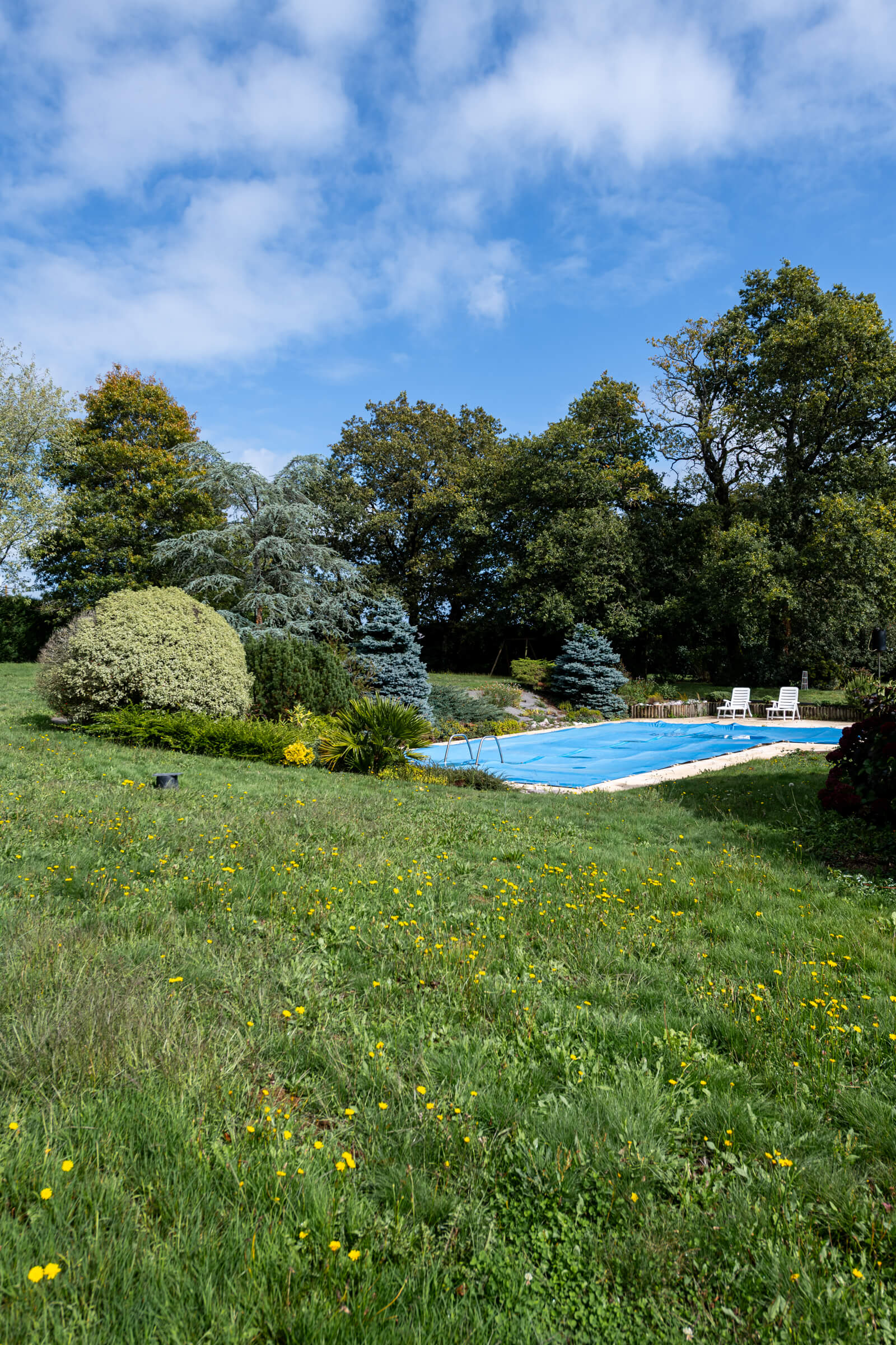 Le domaine s’étend sur près de trois hectares de terrain, alternant parc arboré et prairies ouvertes.