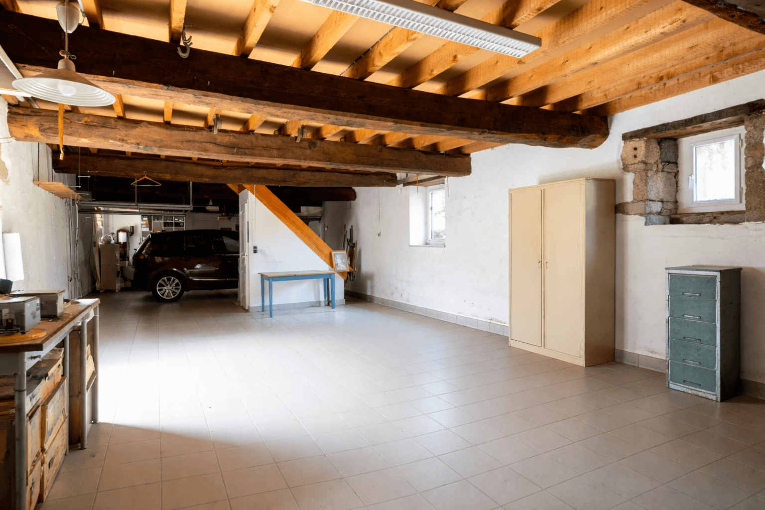 - Double garage de 110 m² avec sol carrelé et grenier